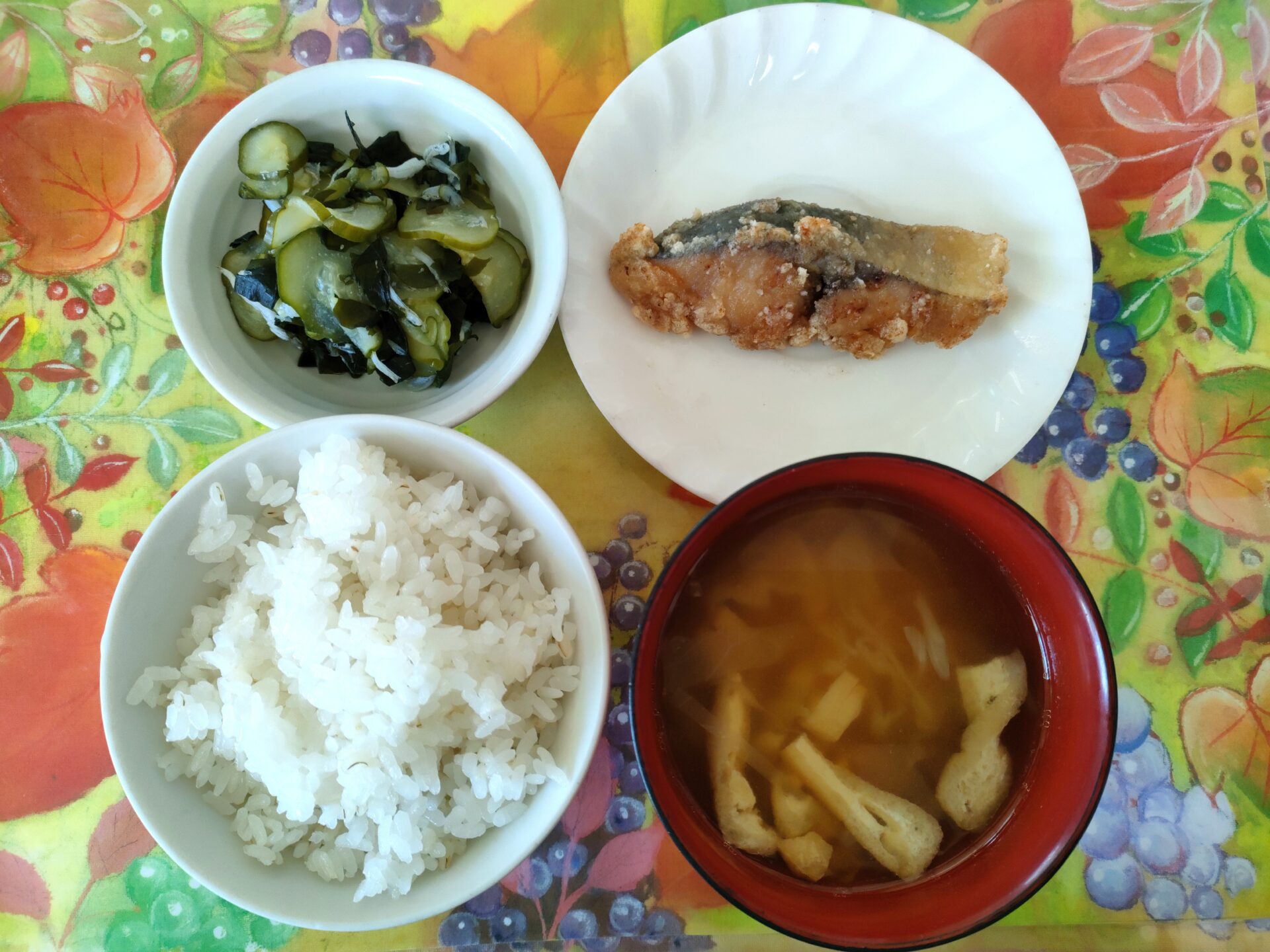 ぶりの竜田揚げ・きゅうりの酢の物・きゃべつのみそ汁