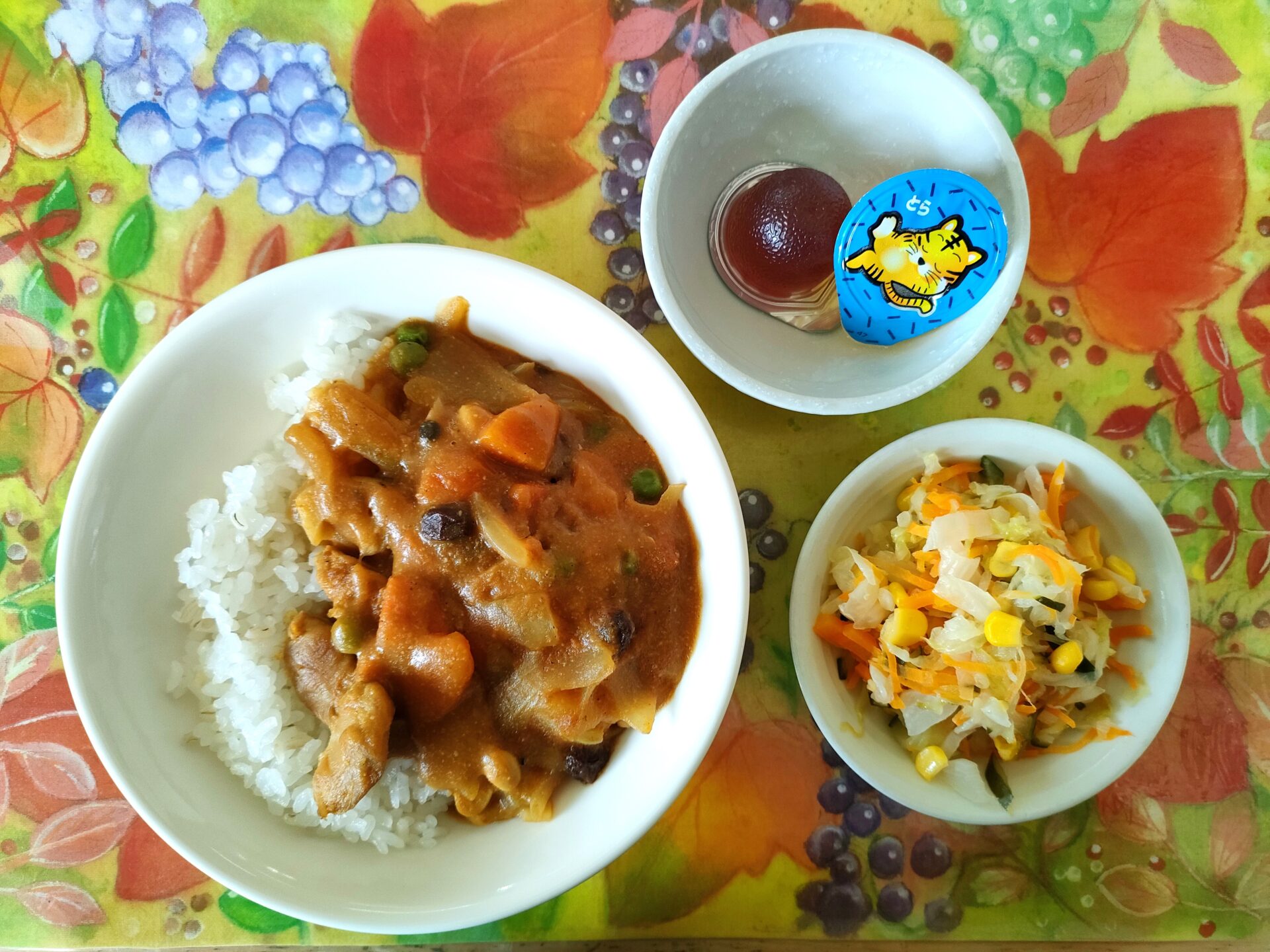 根菜チキンカレー・コールスローサラダ・ミニゼリー