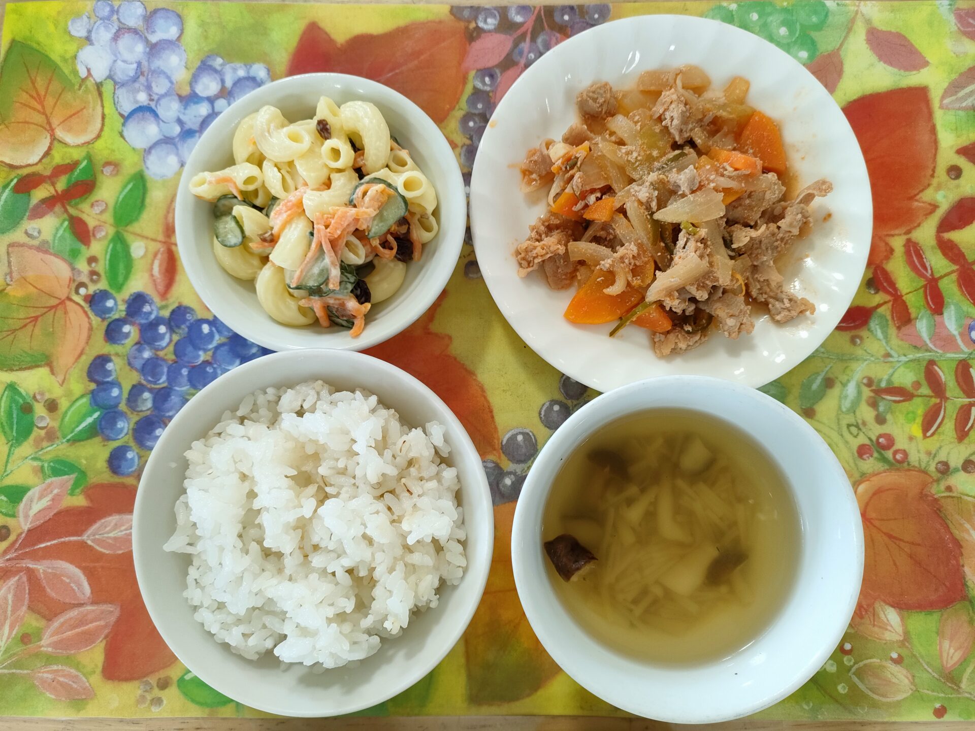 ポークケチャップ・マカロニサラダ・きのこスープ