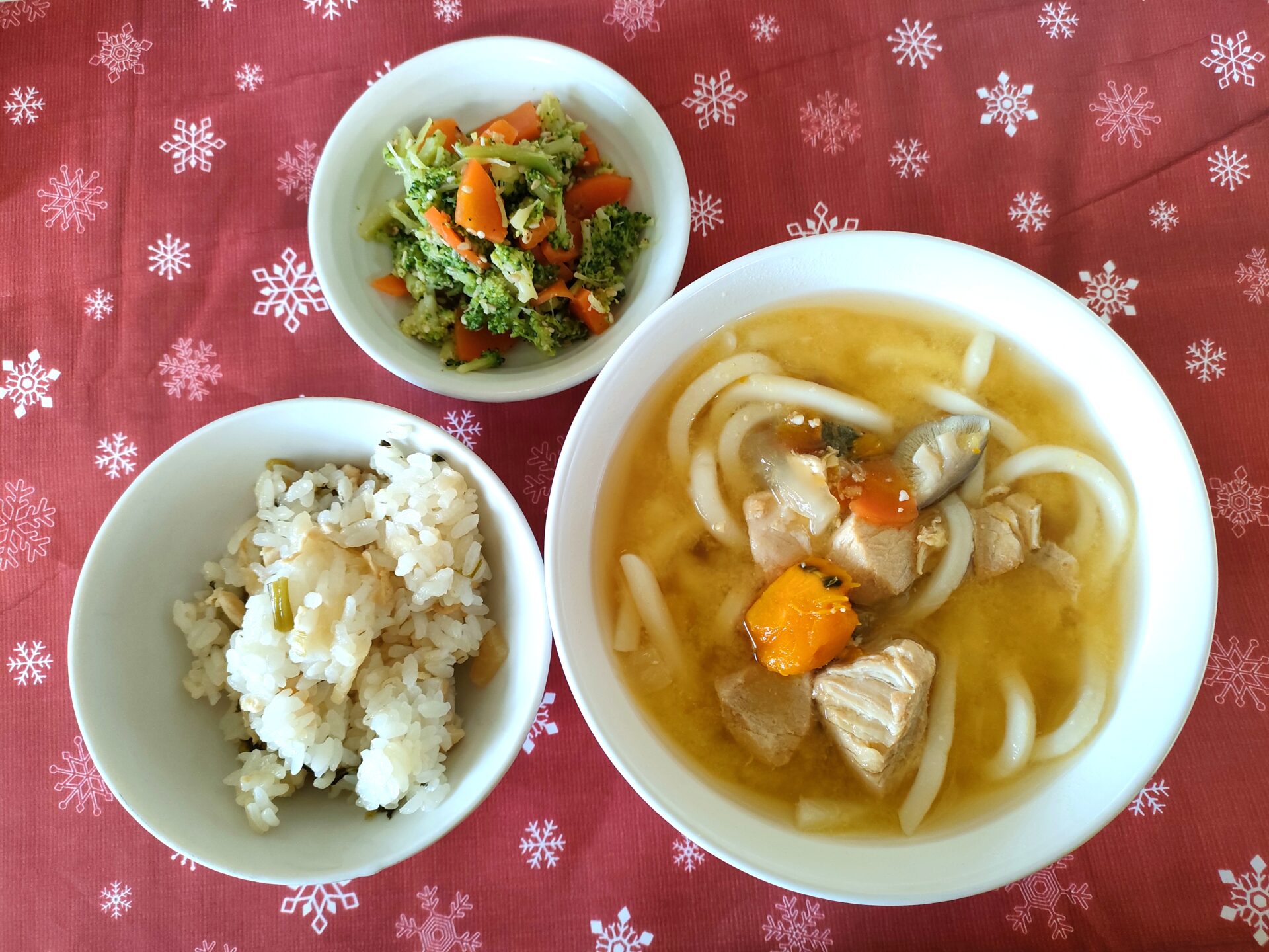 ほうとう風うどん・ブロッコリーの胡麻和え・大根ごはん 2025/12/22 朝のおやつ(0,1,2歳児) クラッカー 3時のおやつ(全園児) お好み焼き 月別アーカイブ 月別アーカイブ 月を選択 2025年12月 (20) 2025年11月 (18) 2025年10月 (22) 2025年9月 (20) 2025年8月 (17) 2025年7月 (21) 2025年6月 (21) 2025年5月 (20) 2025年4月 (21) 2025年3月 (20) 2025年2月 (18) 2025年1月 (19) 2024年12月 (19) カレンダー 2025年12月 月 火 水 木 金 土 日 1234567 891011121314 15161718192021 22232425262728 293031 « 11月 最近の投稿 ナポリタンスパゲティー・切干大根のサラダ・オニオンスープ 令和7年12月26日 ぶり大根、いんげんのツナ和え、にゅうめん 令和7年12月25日 鶏そぼろ丼・五目大豆煮・白菜のみそ汁 令和7年12月24日 すき焼き風煮・竹輪の磯辺揚げ・小松菜のみそ汁 令和7年12月23日 ほうとう風うどん・ブロッコリーの胡麻和え・大根ごはん 令和7年12月22日 カレーライス・ブロッコリーサラダ・果実ゼリー 令和7年12月19日 豚肉の生姜炒め・里芋のサラダ・豆腐のみそ汁 令和7年12月18日 牛肉とれんこんの混ぜご飯・きゅうりの酢の物・お麩のすまし汁 令和7年12月17日 鮭のオーロラソース・スパゲティーサラダ・きのこスープ 令和7年12月16日 ホイコーロー、しゅうまい、大根スープ 令和7年12月15日