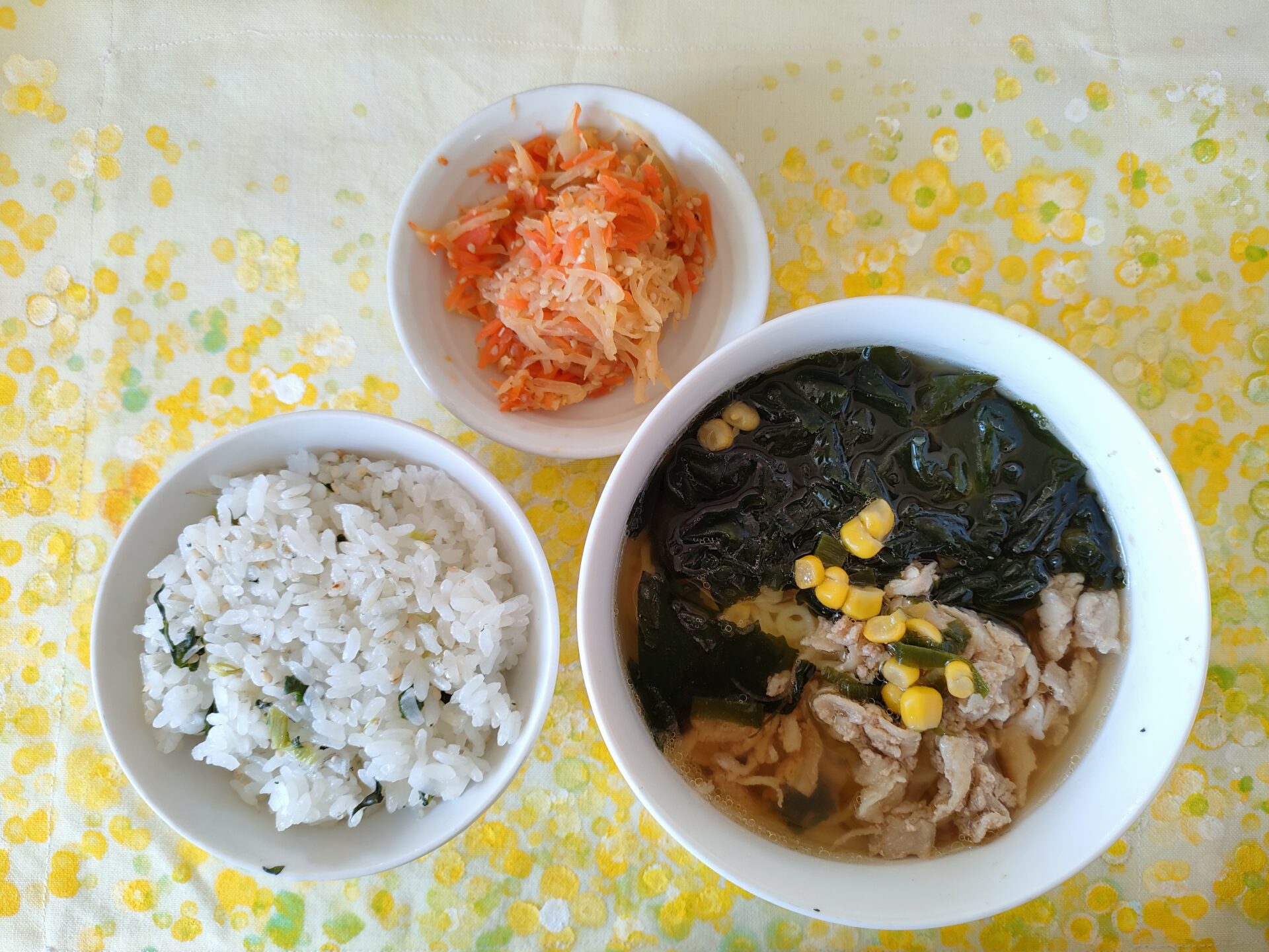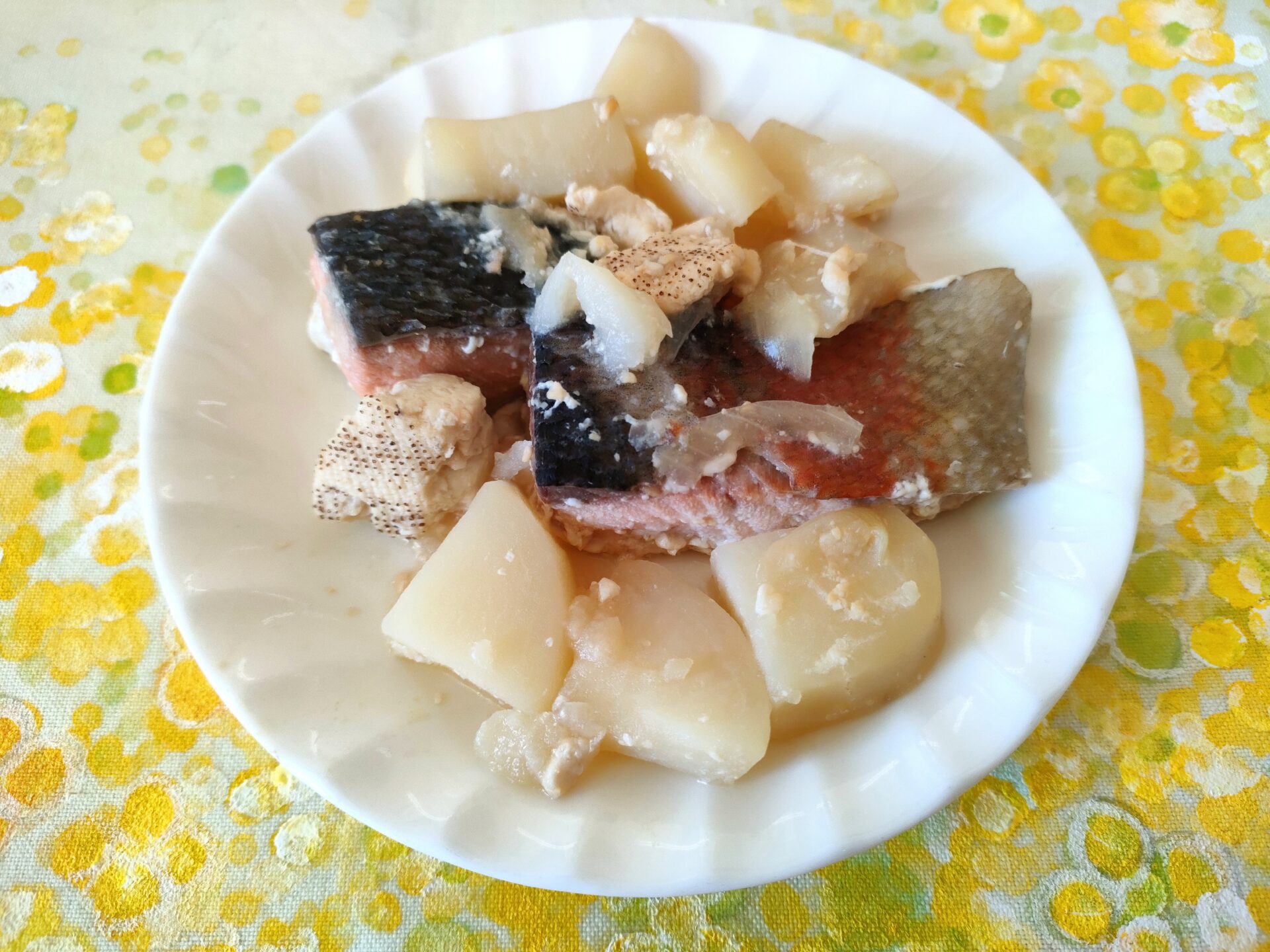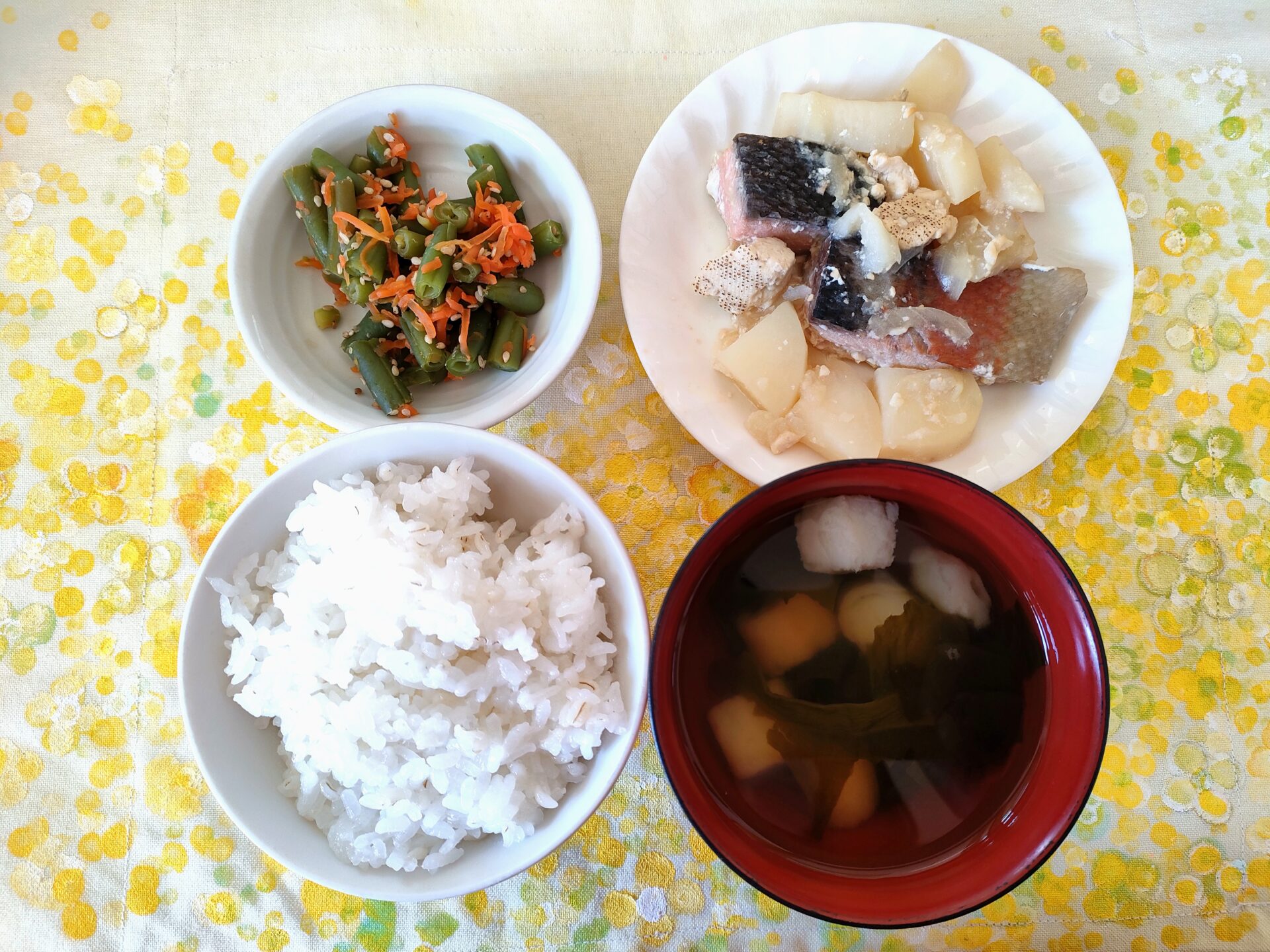 鮭の石狩・いんげんのごま和え・お麩のすまし汁