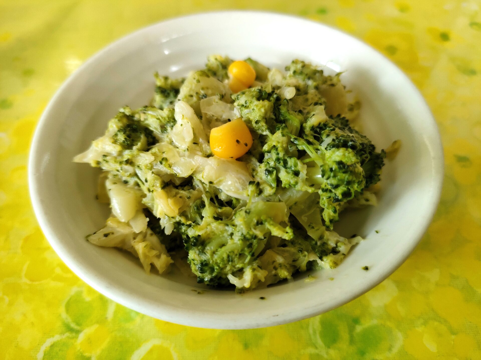 ポークビーンズ・ブロッコリーサラダ・ロールパン