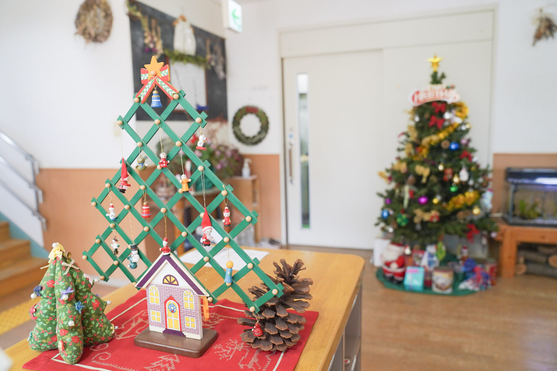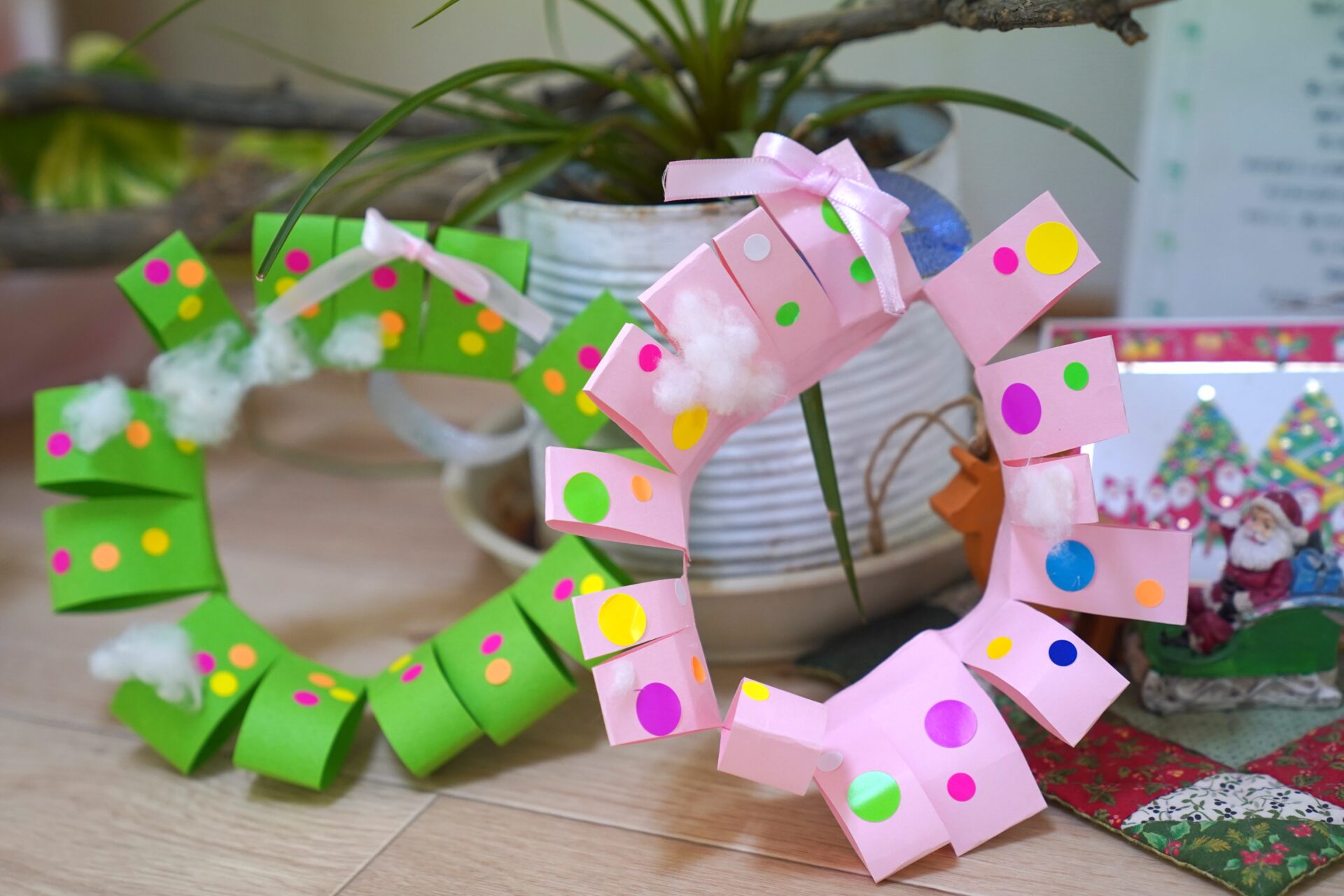 4月 5月 6月 7月 8月 9月 10月 11月 12月 1月 2月 3月 子どもの様子 環境 アトリエ工房(3~4歳児) (クリスマス製作) こどもたちが好きなクラスの 製作を選択して作りました ひばり工房(ツリー) かもめ工房(リース) はと工房(サンタとトナカイ)