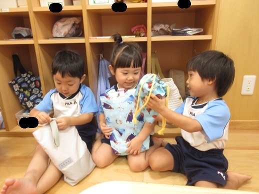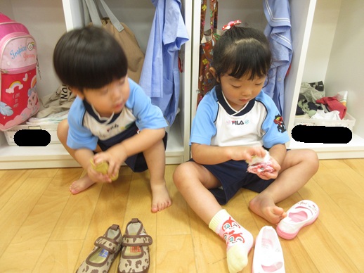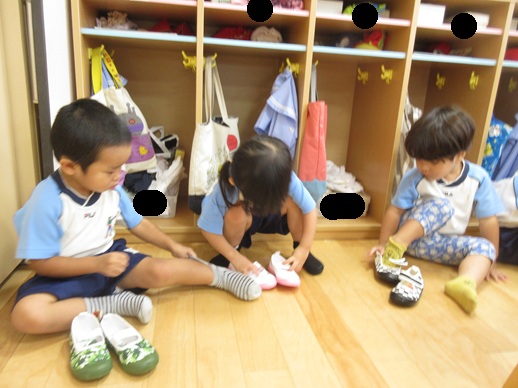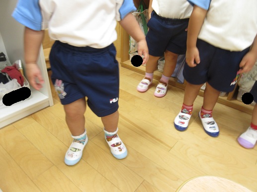 2025/10/02 つばめ組(2歳児)が9月中旬頃から上靴を履く練習をしています! 上靴を持ってきた日から「上靴買ったよ!」「エルサ!」「トーマス!」などとたくさん教えてくれて、ルンルンな子どもたち(*^^)v はじめは履き方がわからず、苦戦していた子どももいましたが、履き方を伝えながら一緒に履くことができるととっても嬉しそうに足をバタバタさせていました! 同じ上靴のお友達を見つけると「一緒や!!」と会話をしたりもしていましたよ♬ 上靴を履いているとすっかりお兄さん、お姉さんに見えますね☆彡