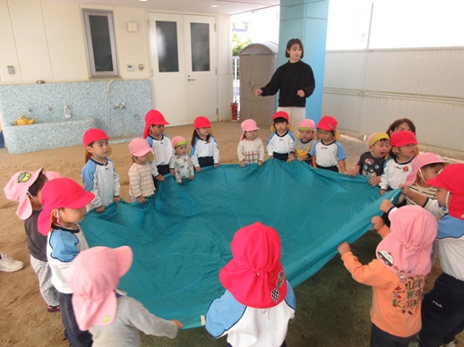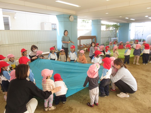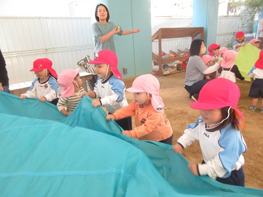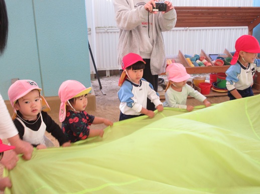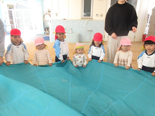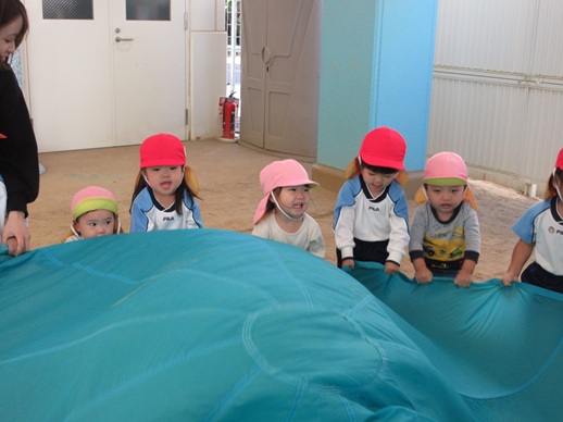2種目目はパラバルーン!「アンパンマン」の曲に合わせてとっても上手にバサバサと動かしていました♬