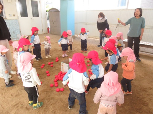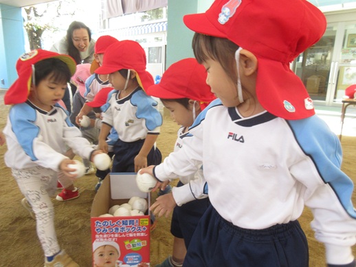 ボールをたくさん抱えて一生懸命入れる姿がとってもかわいかったです!!
