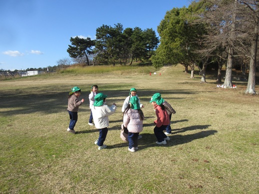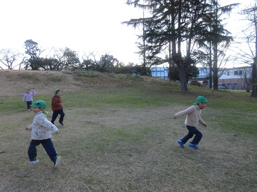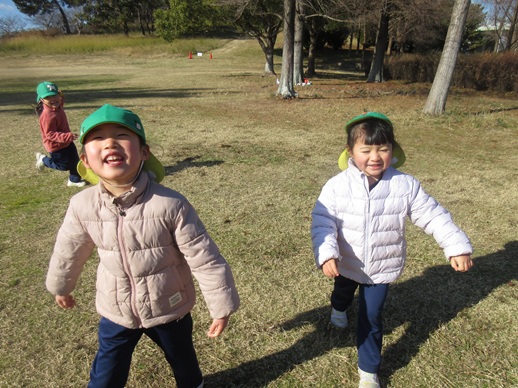 2026/01/23 1月も後半になり、寒い日が続いていますが、子どもたちは寒さに負けず、外遊びを楽しんでいます! 「子どもは風の子」というのは本当だと、改めて感じさせられます。 「カニ公園での自由遊び」