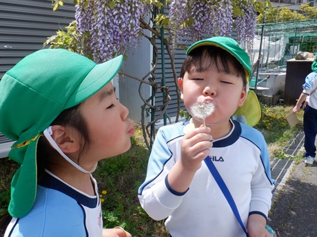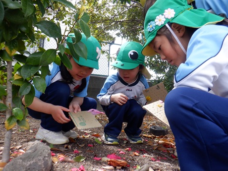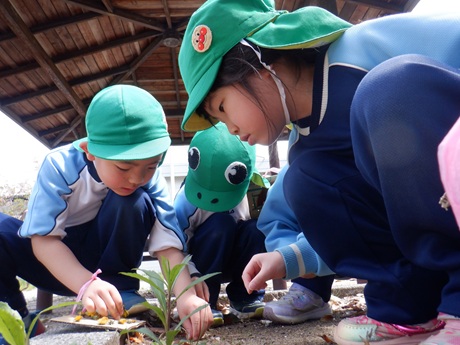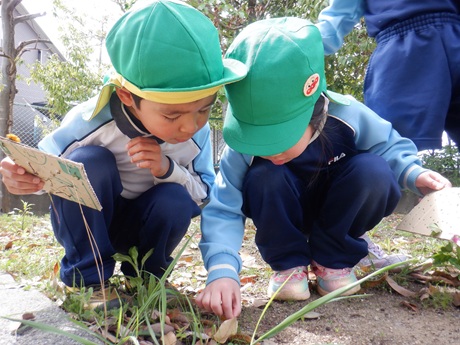 いろいろな植物に触れたり、春探しをしたり、